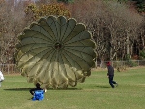 We made some of our own fun at the DZ that involved a big round reserve parachute and a Tupperware box big enough to sit in. The world can never be truly safe from bored skydivers.